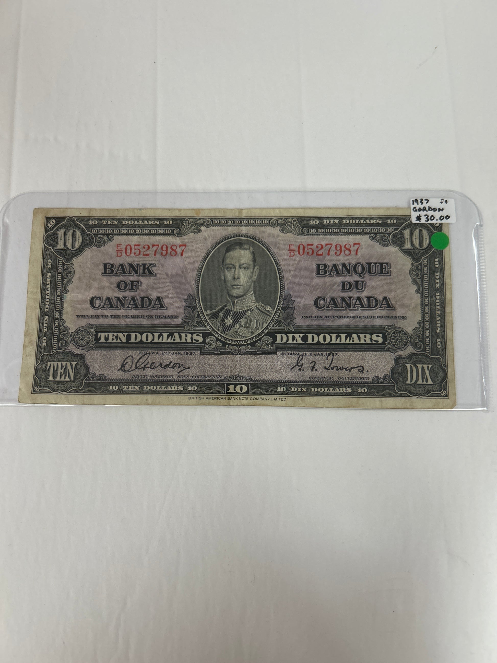 Bank Of Canada {1937} Gordon/Towers F+