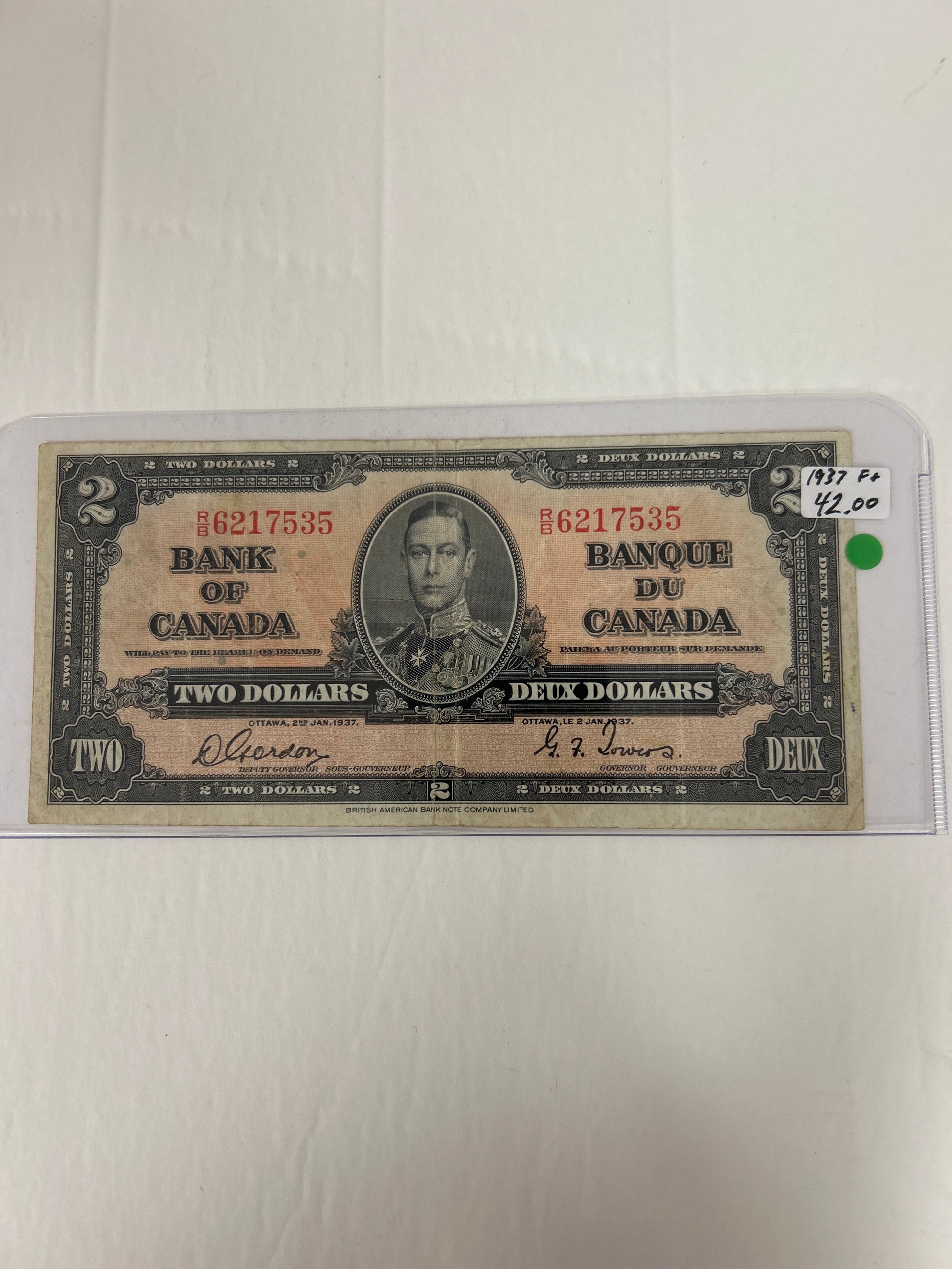 Bank Of Canada {1937} Grodon/Towers F+